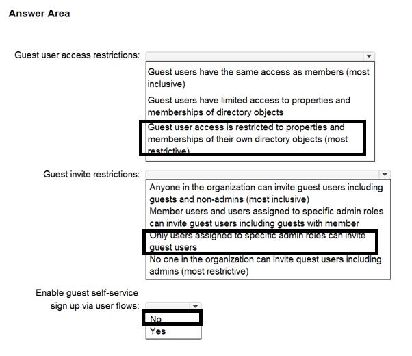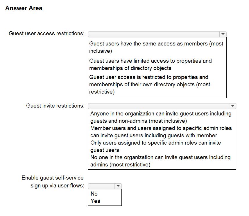 You need to configure External collaboration settings for the tenant to meet the following requirements: