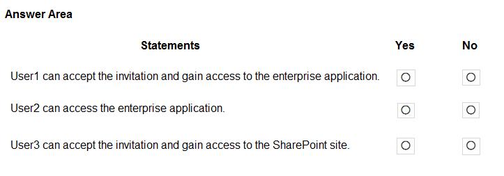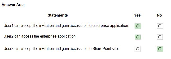 Invitations can only be sent to outlook.com. Therefore, User1 can accept the invitation and access the application.