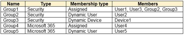 You have an Azure Active Directory (Azure AD) tenant that contains the following objects: