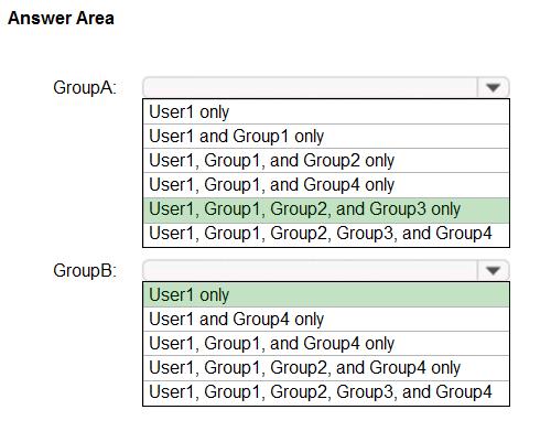 Which members can you add to GroupA and GroupB? To answer, select the appropriate options in the answer area.