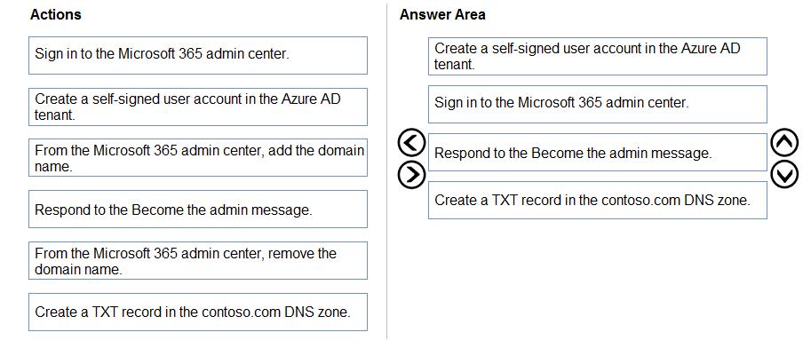 Which four actions should you perform in sequence? To answer, move the appropriate actions from the list of actions to the answer area and arrange them in the correct order.