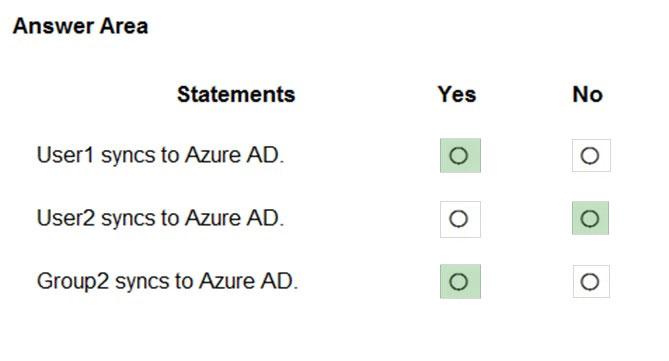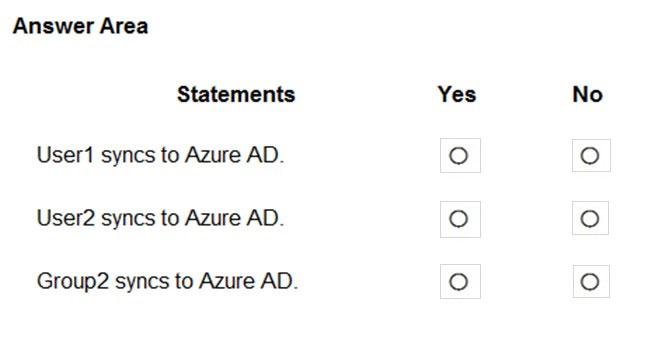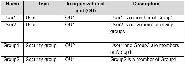 Your network contains an on-premises Active Directory domain named contoso.com. The domain contains the objects shown in the following table.