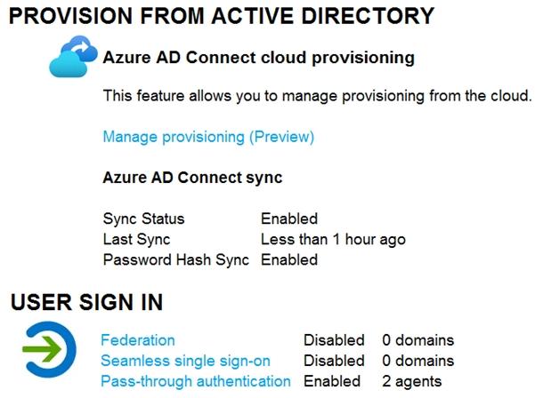 Azure AD Connect is configured in Azure AD as shown in the following exhibit.