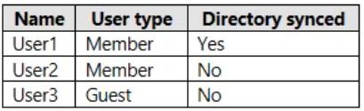 You have an Azure Active Directory (Azure AD) tenant that contains the users shown in the following table.