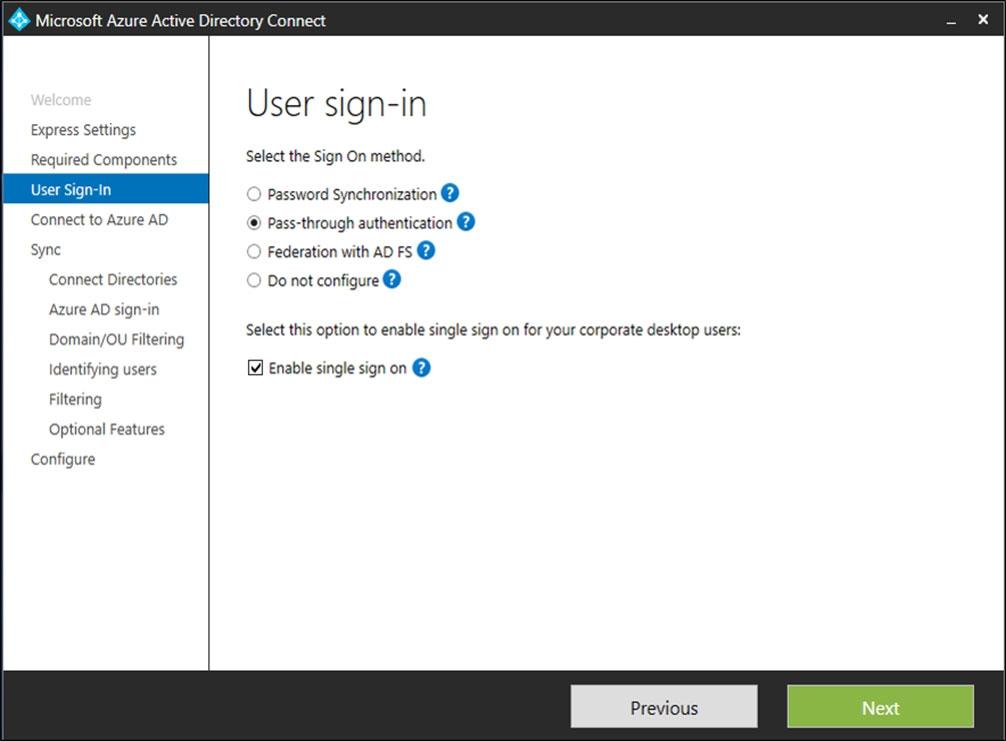 The option will be available for selection only if the Sign On method is Password Hash Synchronization or Pass-through Authentication.