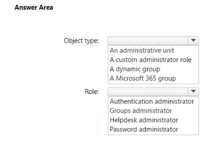 Which object type and Azure Active Directory (Azure AD) role should you use? To answer, select the appropriate options in the answer area.