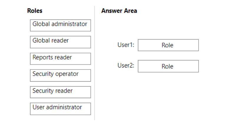 Which role should you assign to each user? To answer, drag the appropriate roles to the correct users. Each role may be used once, more than once, or not at all. You may need to drag the split bar between panes or scroll to view content.