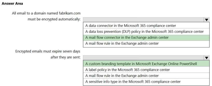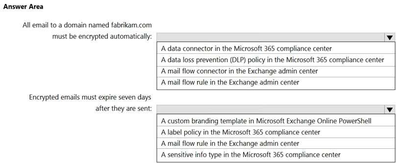 https://docs.microsoft.com/en-us/microsoft-365/compliance/email-encryption?view=o365-worldwide https://docs.microsoft.com/en-us/microsoft-365/compliance/ome-advanced-expiration?view=o365-worldwide