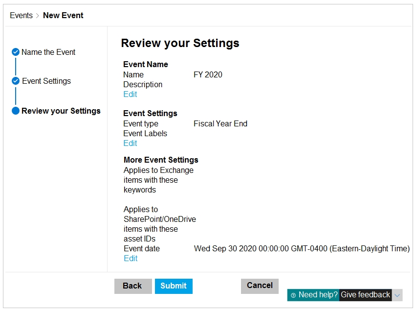 On December 1, 2020, you create the event shown in the Event exhibit. (Click the Event tab.)