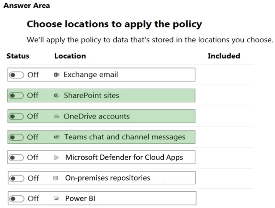 Which three locations should you select? To answer, select the appropriate locations in the answer area.