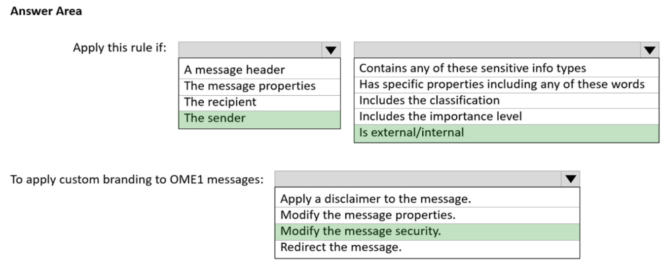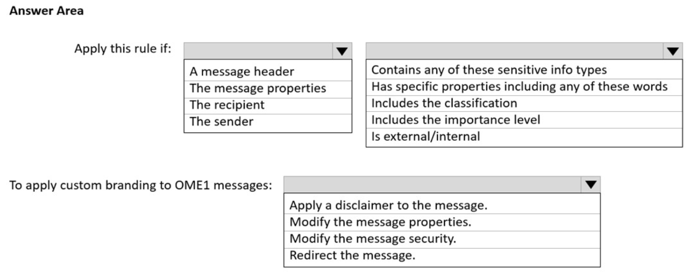 From Do the following, select Modify the message security > Apply custom branding to OME messages. Next, from the drop-down, select a branding template.