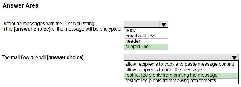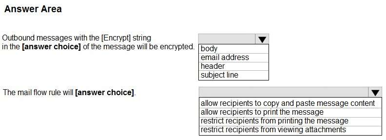 Note: IRM is an encryption solution that also applies usage restrictions to email messages. It helps prevent sensitive information from being printed, forwarded, or copied by unauthorized people. IRM capabilities in Microsoft 365 use Azure Rights Management (Azure RMS).