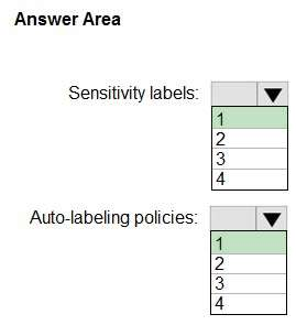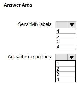 What is the minimum number of sensitivity labels and auto-labeling policies you should create? To answer, select the appropriate options in the answer area.