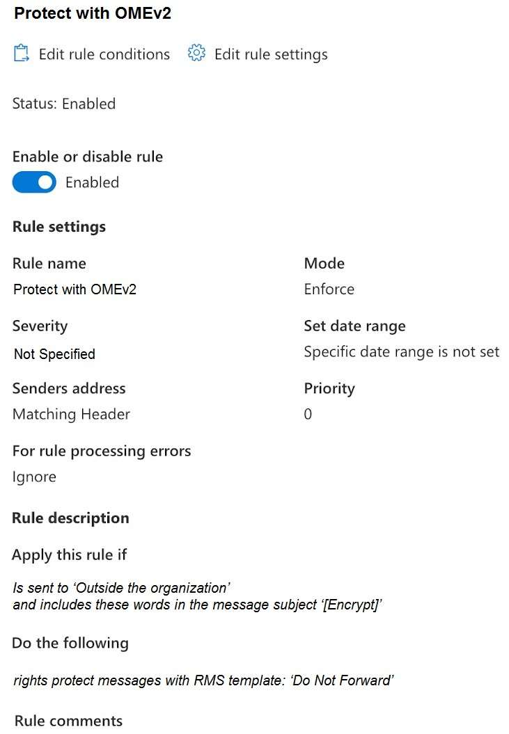 In Microsoft Exchange Online, you have the mail flow rule shown in the following exhibit.