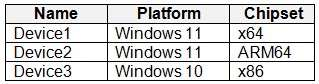 You have a Microsoft 365 5 subscription that contains the devices shown in the following table.