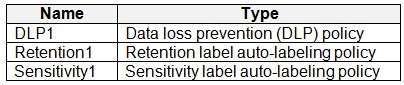* You create a data loss prevention (DLP) policy that has Exchange email, SharePoint sites, OneDrive accounts, and Teams chat and channel messages selected.OneDrive accounts, and Teams chat and channel messages selected.