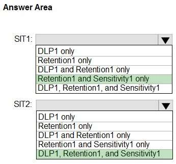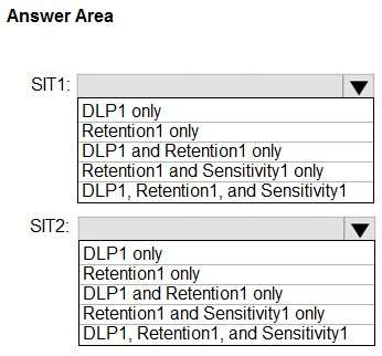 Which policies can use SIT1, and which policies can use SIT2? To answer, select the appropriate options in the answer area.