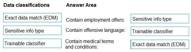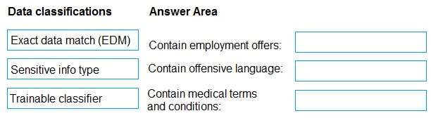 Which type of data classification should you use for each condition? To answer, drag the appropriate data classification types to the correct conditions. Each data classification type may be used once, more than once, or not at all. You may need to drag the split bar between panes or scroll to view content.