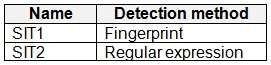 You have a Microsoft 365 E5 subscription that contains the sensitive information types (SITs) shown in the following table.