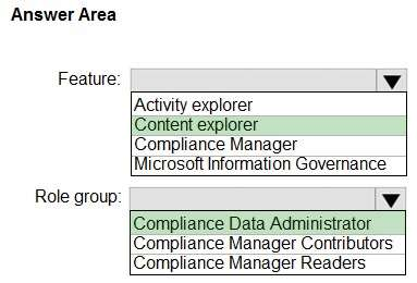 Which feature should you use and to which role group should you be added? To answer, select the appropriate options in the answer area.