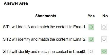 You have a Microsoft 365 E5 subscription that contains the sensitive information types (SITs) shown in the following table.
