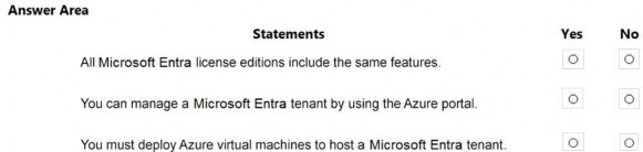 For each of the following statements, select Yes if the statement is true. Otherwise, select No.