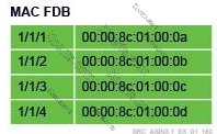 A switch with the MAC FDB shown in the exhibit receives an Ethernet frame with source MAC address 00:00:8c:01:00:0a and destination MAC address ff:ff:ff:ff:ff:ff. On which ports is the frame forwarded?