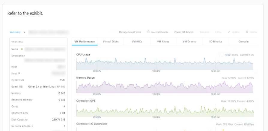 A user is complaining about slowness of a mission-critical MSSQL Server. The administrator logs into Prism Element to investigate the VM performance and observes what is shown in the diagram.