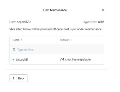 According to the Nutanix Community1, host maintenance mode is used to safely migrate all the user virtual machines (VMs) in the host and make sure no VMs are running on the node. If a VM can't be migrated to another host, you need to shut down the VM for the host to enter into maintenance mode.