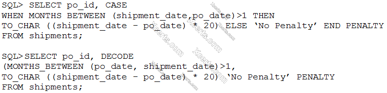 You want to generate a report that displays the SHIPMENT_DATE is later than one month from Evaluate the following two queries: