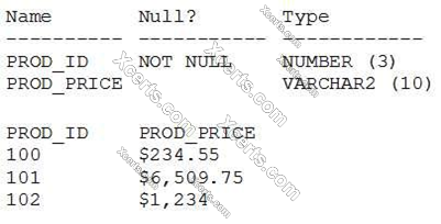 2. SELECT TO_CHAR (TO_NUMBER(prod_price) * .25, ‘$99,999.00’)