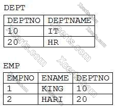 View the Exhibit and examine the data in EMP and DEPT tables.