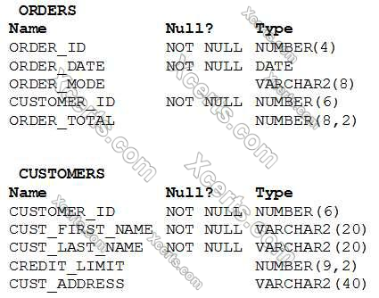 View the Exhibit and examine the structure of ORDERS and CUSTOMERS tables.