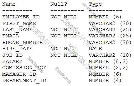 Examine the structure of the EMPLOYEES table: