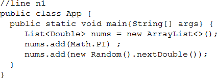 4. The code results in a compilation error. To make it compile, insert at line n1: