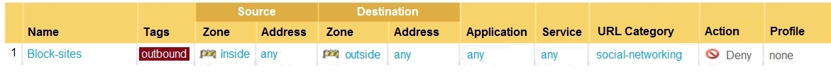 In the example security policy shown, which two websites would be blocked? (Choose two.)