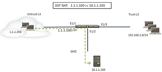 A web server in the DMZ is being mapped to a public address through DNAT.