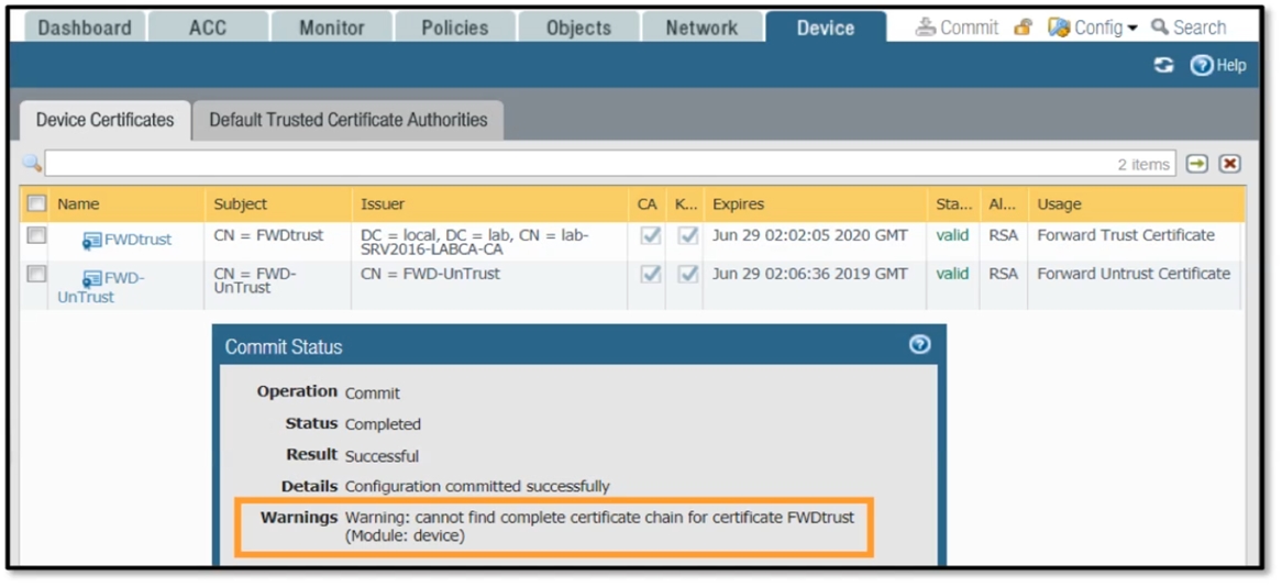 3. SSL Forward Proxy requires a public certificate to be imported into the firewall.