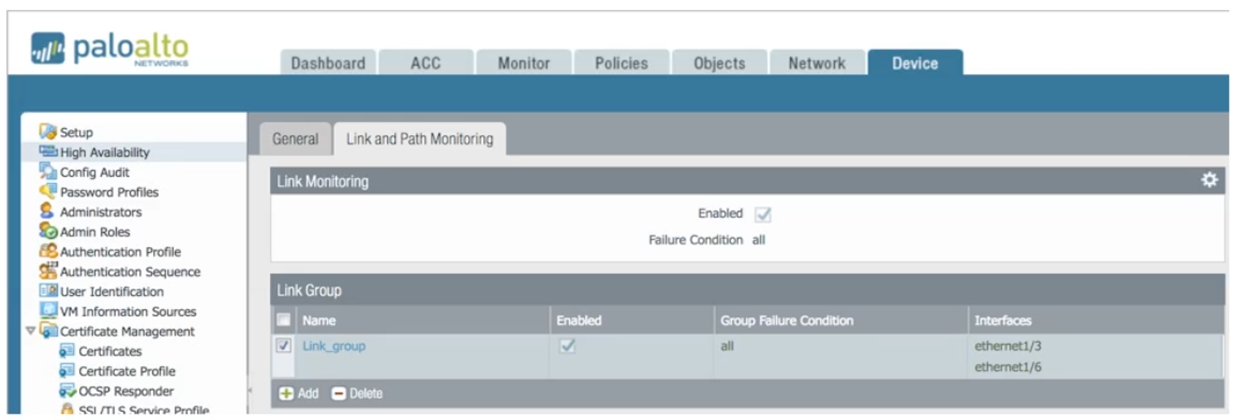 If the firewall has the following link monitoring configuration, what will cause a failover?