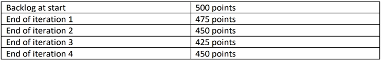 Based on the backlog metrics in the chart, what can explain the jump in points at the end of iteration 4?