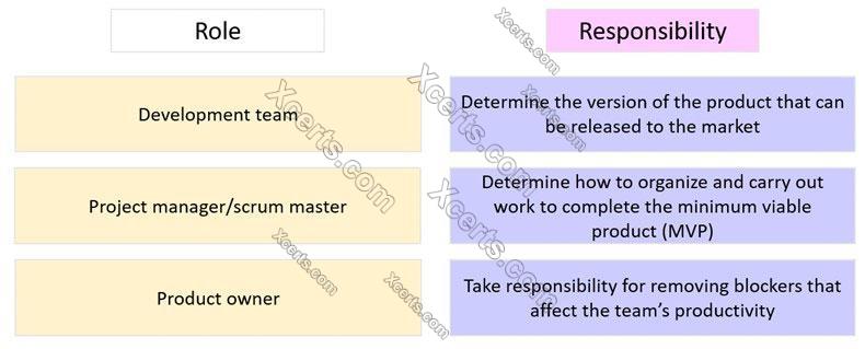 Match the roles for the team on the left to their corresponding responsibilities on the right.