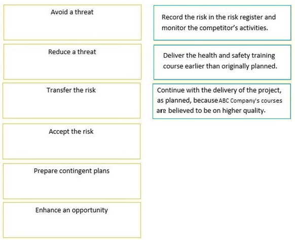 Choose only one response type for each risk response. Each response type can be used once, more than once, or not at all.