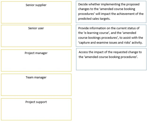 A request has been received from a user to add the function to pay by credit card to the „amended course booking procedures‟ for the „e- learning course‟. The user has suggested that sales of the course will be reduced if this change is not implemented. Here are three actions relating to this request for change.
