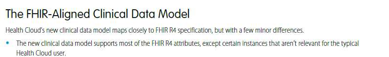 1. The New clinical data model in health cloud is aligned with FHIR R4 standards.