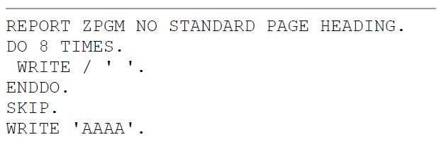 On what line does the output `AAAA' appear in the following code?