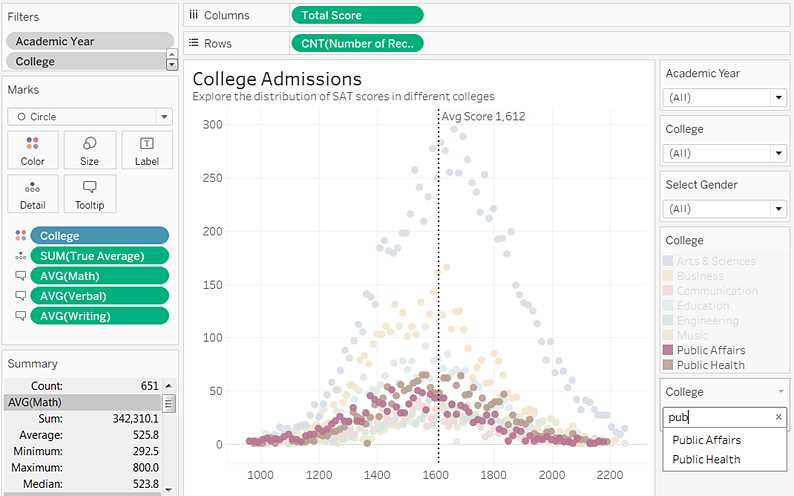 Example - Here we just want to focus on Public Affairs college dimension, but don't want to filter out or remove the rest of the data: