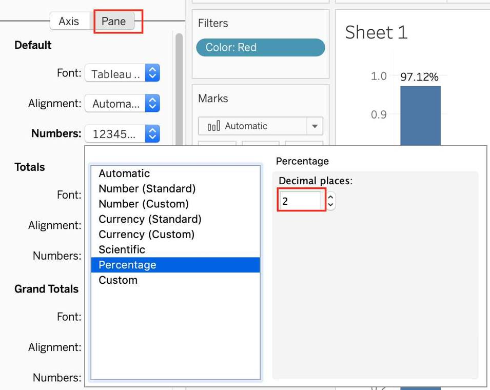 3) Now to display the percentage correctly, lets format it. Click on the In Stock % pill in the Row shelf, and select format: